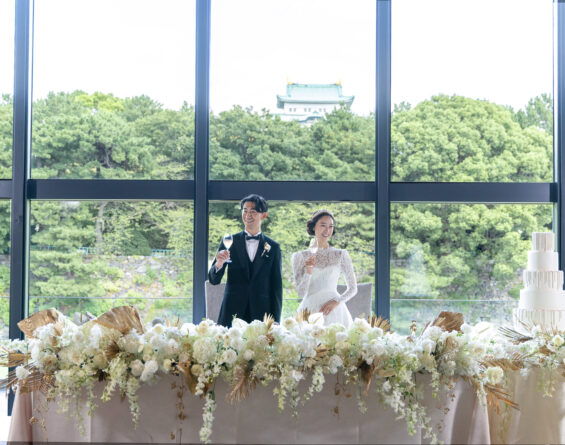 【名古屋城を目の前にした解放感溢れるご披露宴会場】エスパシオウエディングが大切にする世界観。空間美、装い、結婚式当日の情景や温度を感じていただくご披露宴会場を専属プランナーがご提案とともにご案内いたします。