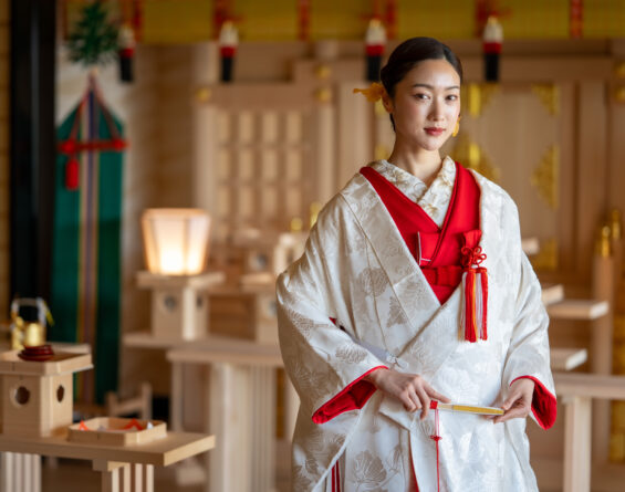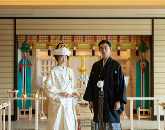 【この日だけの限定公開】260年の歴史を刻む名古屋城を地で執り行われる神前式。熱田神宮の御霊が祀られた厳かな神殿をご見学いただけます。家族と先祖を敬う精神を礎に、おふたりとご家族、ゲストの未来へ続く繁栄を祈り結ぶエスパシオオリジナルの和装人前式もご提案可能です。