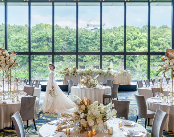どの会場からも名古屋城を望むことのできる披露宴会場。4つのコンセプトに合わせたおすすめコーディネートを初お披露目します。おふたりのイメージをお伺いしてプロの目線でご提案いたします。