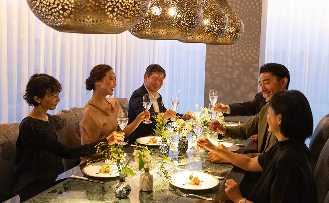 前日のチェックインの瞬間から、物語ははじまります。心と身体をととのえ、ご家族との食事やバーでの語らいを。晴れの日を迎える前夜も、豊かな記憶として刻まれます。