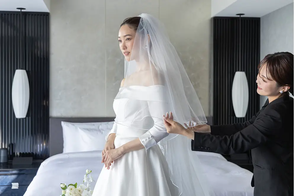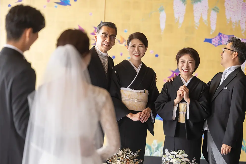 朝のお仕度は客室にて。ご家族とともに、彩雲でのファミリーミートで両家の心を結ぶ温かなひとときを。