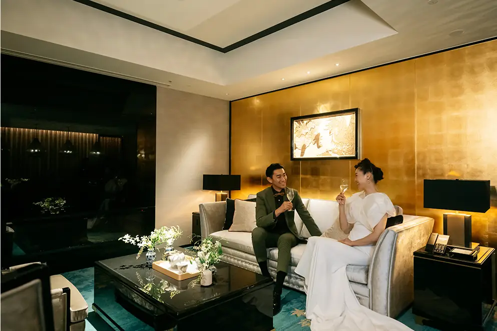 パーティの後も、客室に戻ればまだ続く物語。ゆったりと語らい、静かな時間に浸りながら、幸福の余韻を分かち合えます。